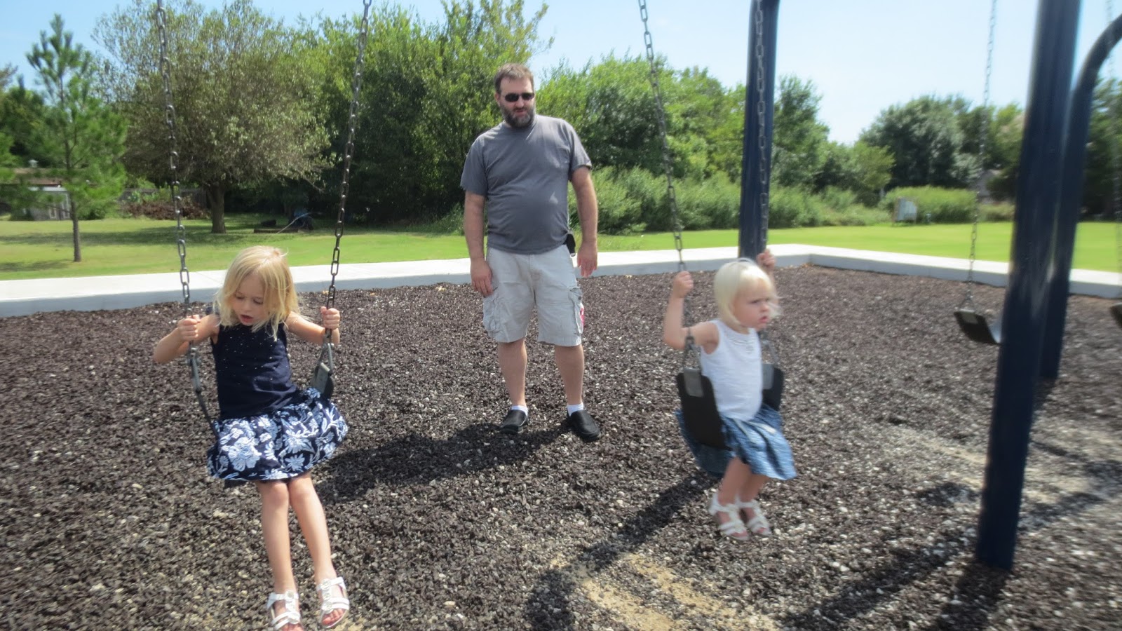 Sunday Papa and Tina came over. Audrey wanted to go out on the swings. They are her favorite right now.